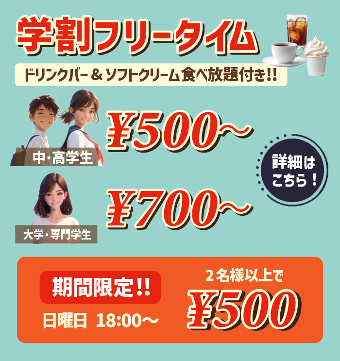 また、新感覚のアルコールバーや、ソフトクリームも食べ放題のドリンクバーもご用意。